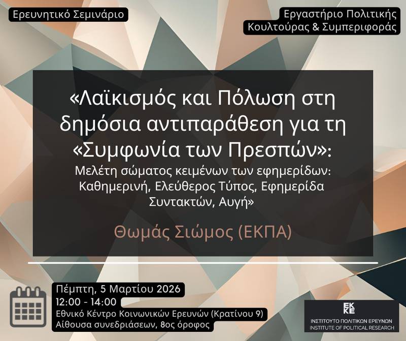 τίτλο παρουσίασης: «Λαϊκισμός και Πόλωση στη δημόσια αντιπαράθεση για τη 'Συμφωνία των